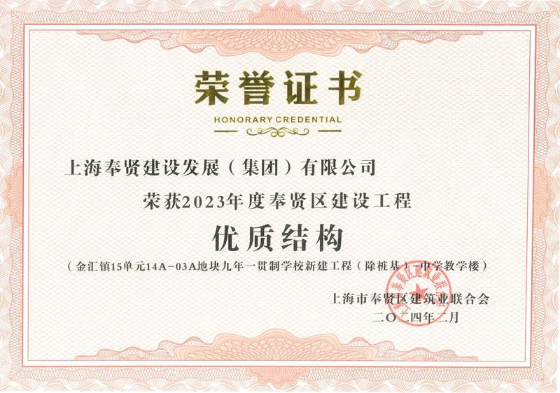 2023年度奉贤区建设工程优质结构——金汇镇15单元14A-03A地块九年一贯制学校新建工程(除桩基)-中学教学楼