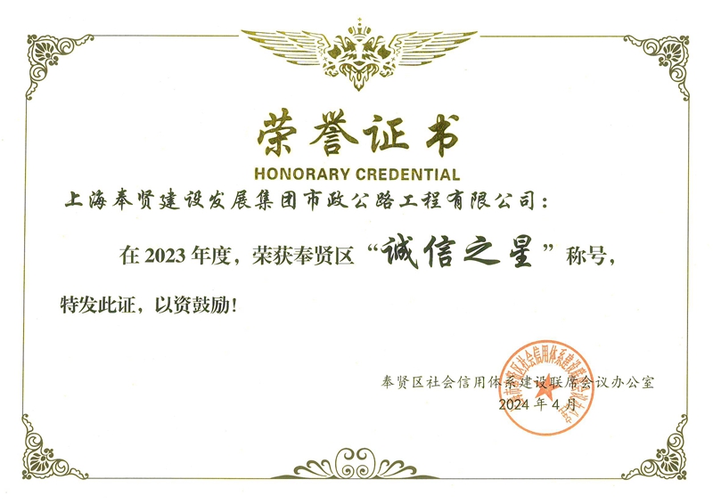 奉贤区“诚信之星”