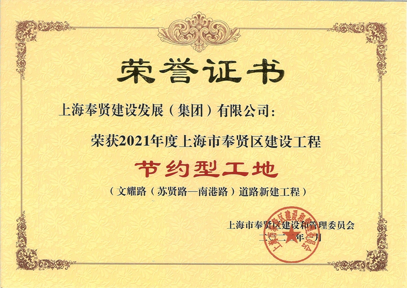 2021年度上海市奉贤区建设工程节约型工地—奉贤区文耀路(南港路-望钱路)