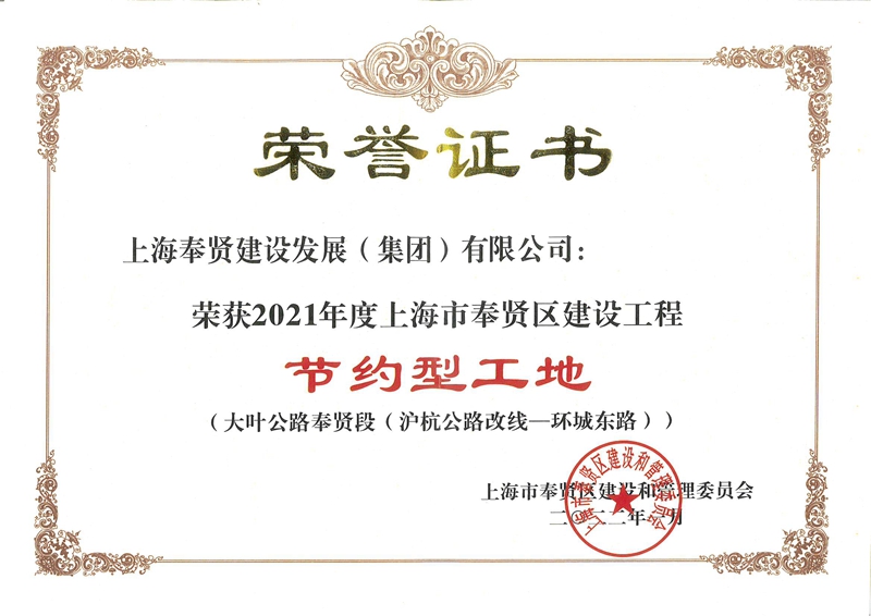 2021年度上海市奉贤区建设工程节约型工地—大叶公路奉贤段(沪杭公路改线-环城东路)