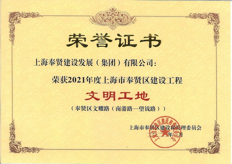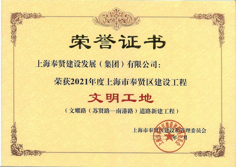2021年度上海市奉贤区建设工程文明工地—奉贤区文耀路(南港路-望钱路)