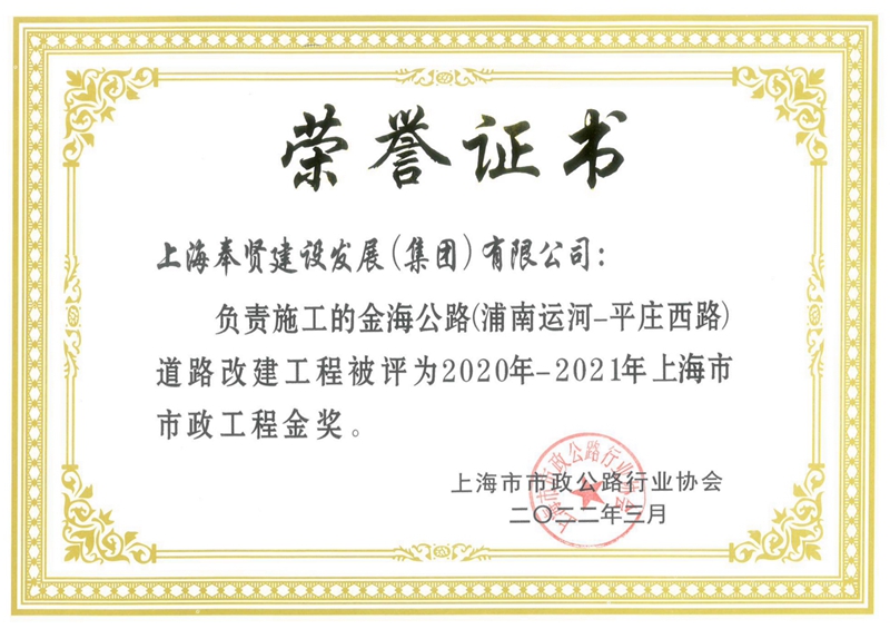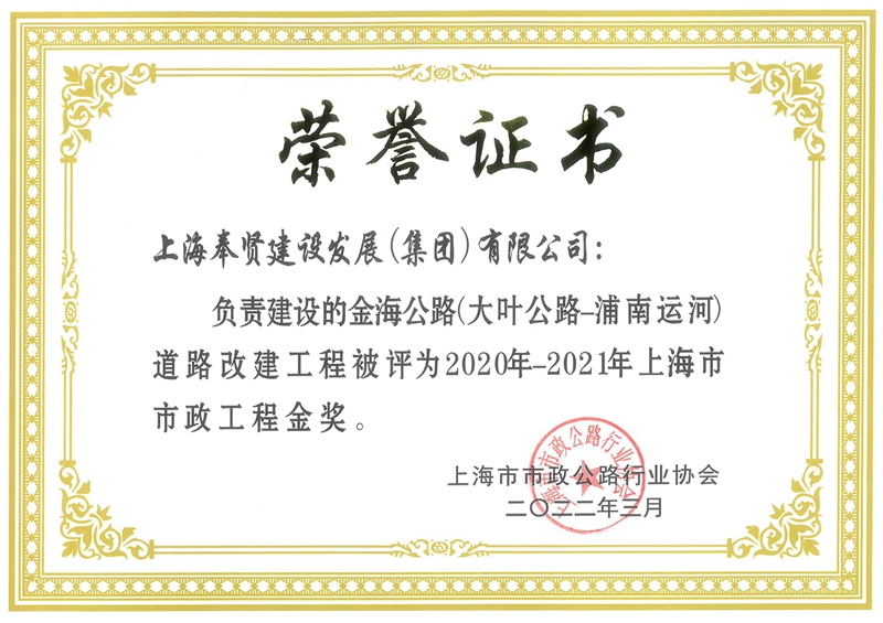 2020年-2021年上海市市政工程金奖—金海公路(大叶公路-浦南运河)道路改建工程
