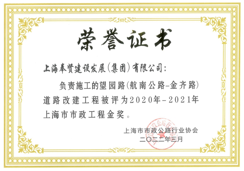 2020年-2021年上海市市政工程金奖—望园路(航南公路-金齐路)道路改建工程