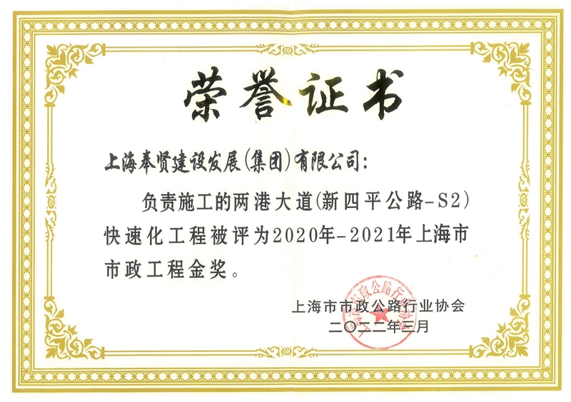 2020年-2021年上海市市政工程金奖—两港大道(新四平公路~s2)快速化工程