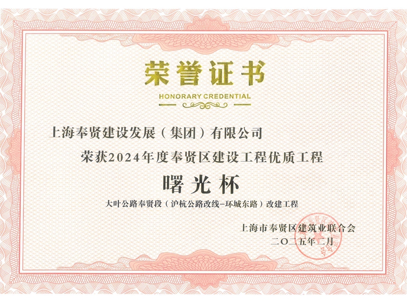 2024年度奉贤区建设工程优质工程曙光杯—大叶公路奉贤段(沪杭公路改线-环城东路)改建工程