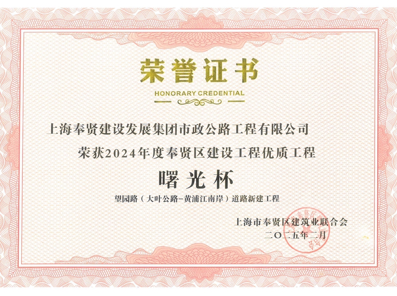 2024年度奉贤区建设工程优质工程曙光杯—望园路(大叶公路-黄浦江南岸)道路新建工程