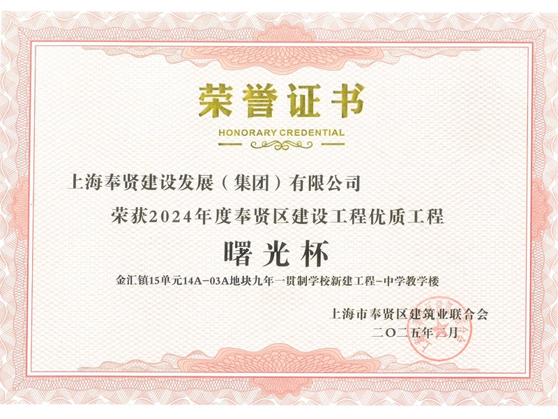 2024年度奉贤区建设工程优质工程曙光杯—金汇镇15单元14A-03A地块九年一贯制学校新建工程-中学教学楼