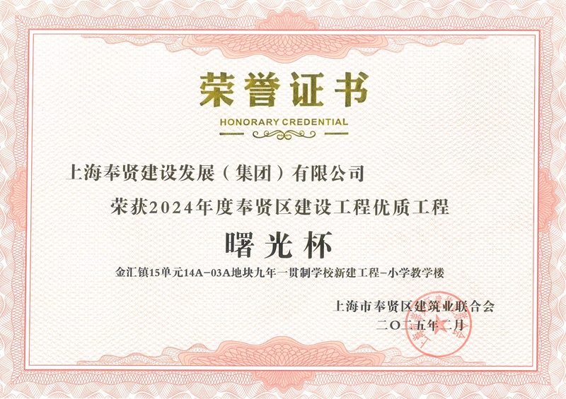 2024年度奉贤区建设工程优质工程曙光杯—金汇镇15单元14A-03A地块九年一贯制学校新建工程-小学教学楼