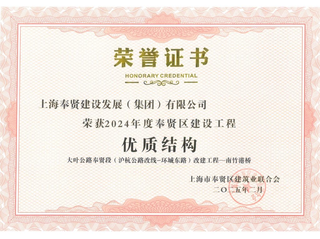 2024年度奉贤区建设工程优质结构—大叶公路奉贤段(沪杭公路改线-环城东路)改建工程-南竹港桥