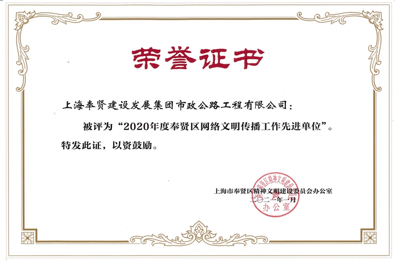 2020年度奉贤区网络文明传播工作先进单位