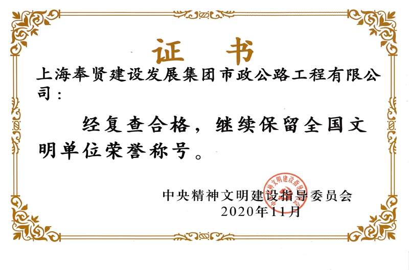 全国文明单位复查合格证书