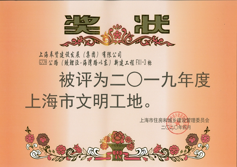 2019年度上海市文明工地—G228公路(鳗鲤泾—海湾路以东)新建工程FXI-3标