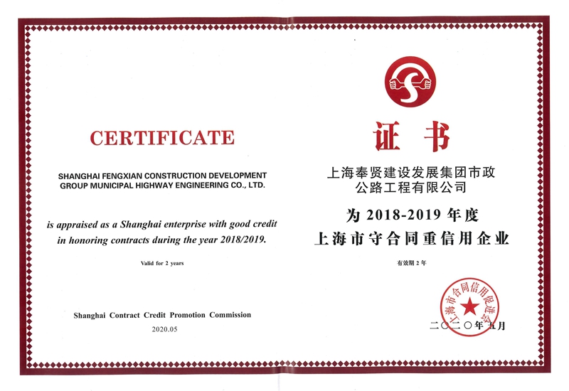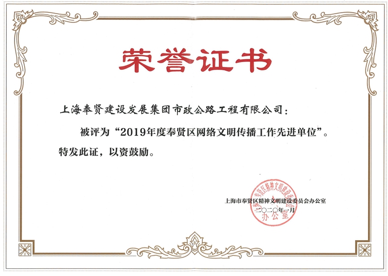 2018年-2019年上海市市政工程金奖—贤浦路(南奉公路~南行港路)道路新建工程