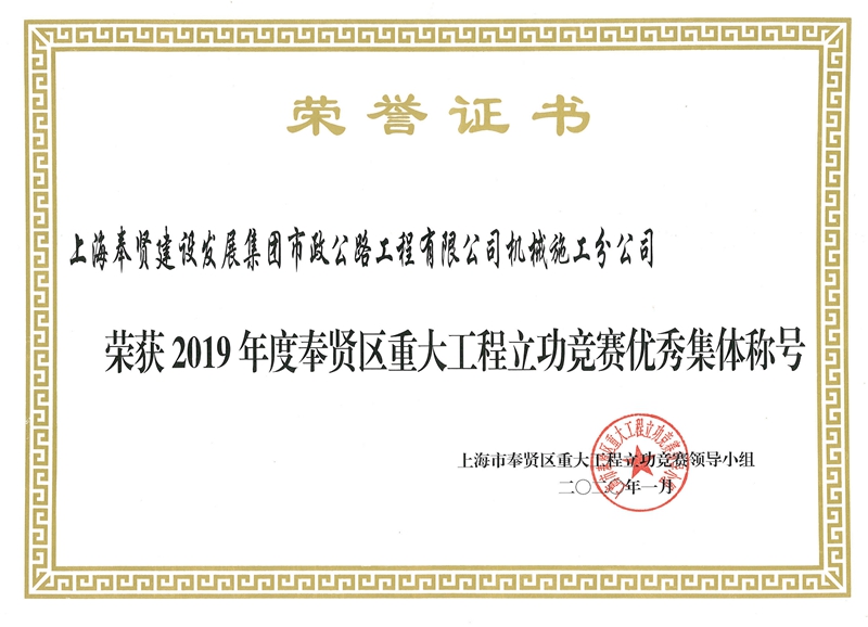 2019年度奉贤区重大工程立功竞赛优秀集体—机械施工分公司