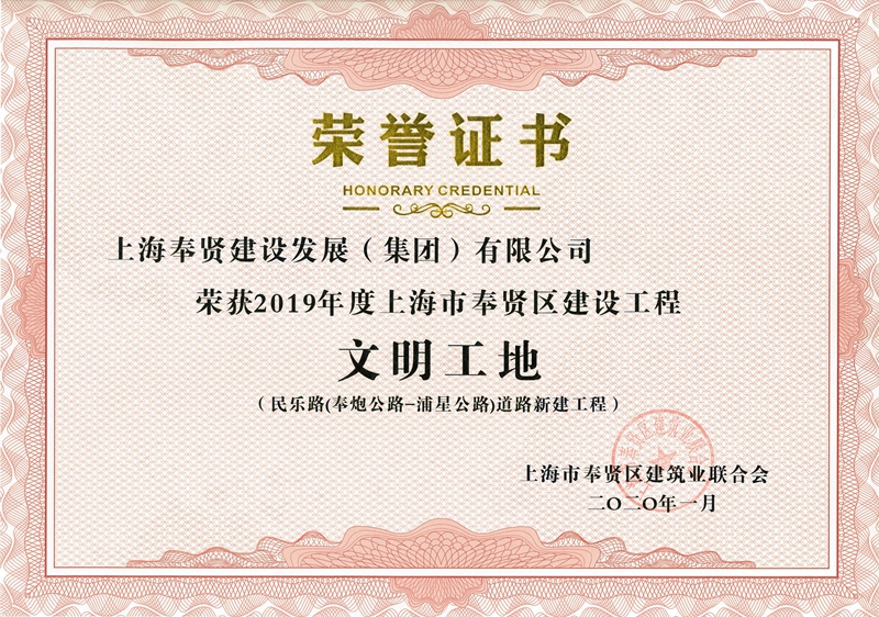 2019年度区文明工地—民乐路(奉炮公路-浦星公路)道路新建工程