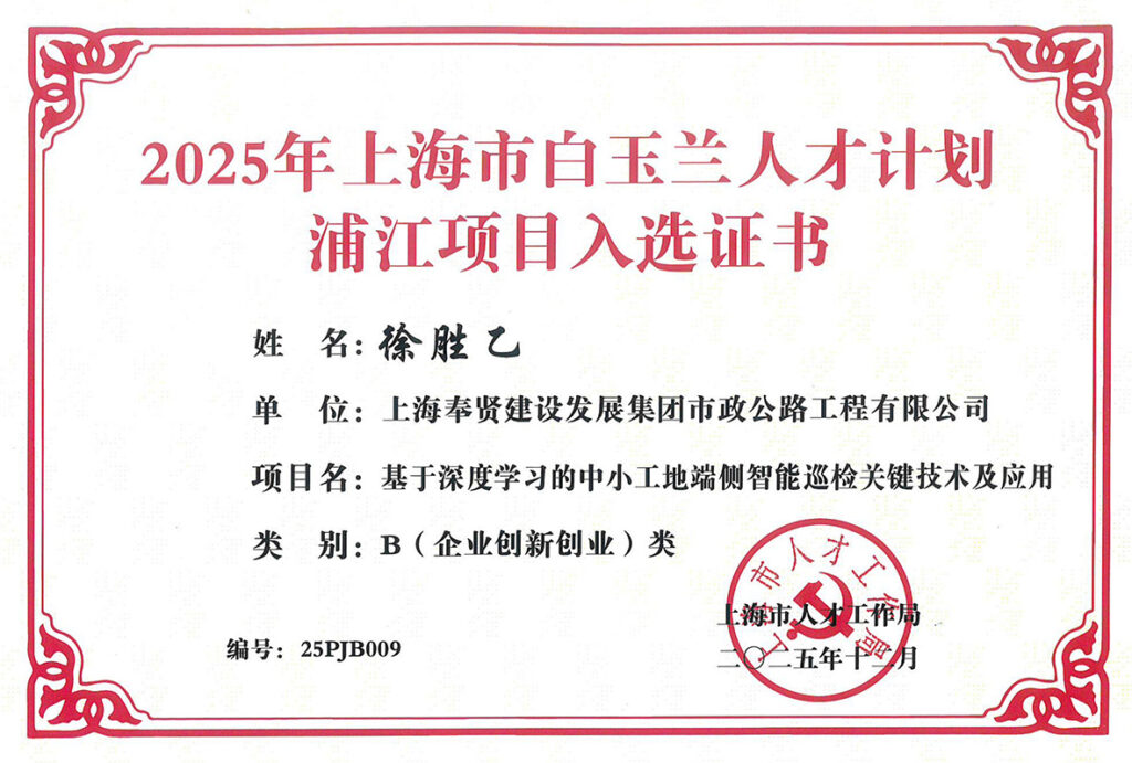 喜报|AI赋能工地,市政公路公司1人入选上海市白玉兰人才计划浦江项目