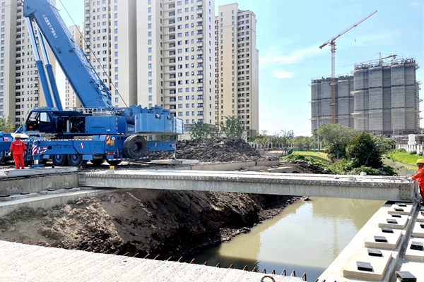 沿港河桥项目桥梁主体结构施工完成