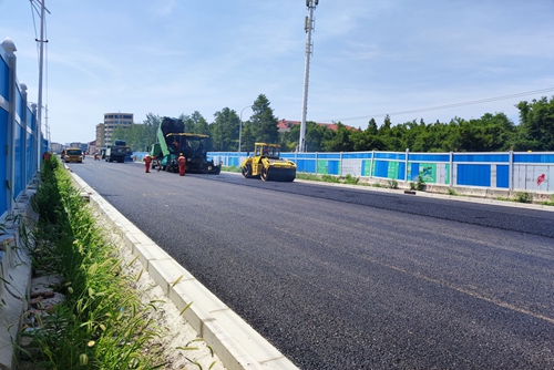 金海公路(海马路~G228公路)沥青摊铺全面展开