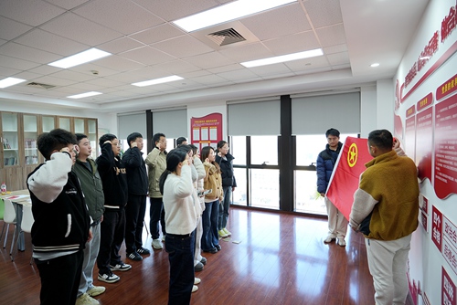 团徽承载青春记忆,党章指引前进方向。活动最后,周爱平为超龄团员摘下团徽并赠送《中国共产党章程》,鼓励大家自觉向党组织看齐,主动向党组织靠拢,在新的人生阶段追求更高思想境界,践行更重责任担当。面对团旗,全体离团青年举起右拳,庄严重温入团誓词。“我志愿加入中国共产主义青年团,坚决拥护中国共产党的领导...”,铿锵有力的誓言在现场回荡,心中的理想信念愈发坚定。